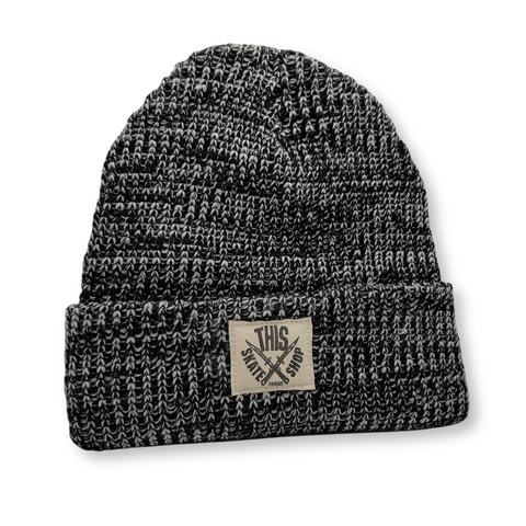 THIS Skateshop | Marled Knit Beanie - Black/White - White patch